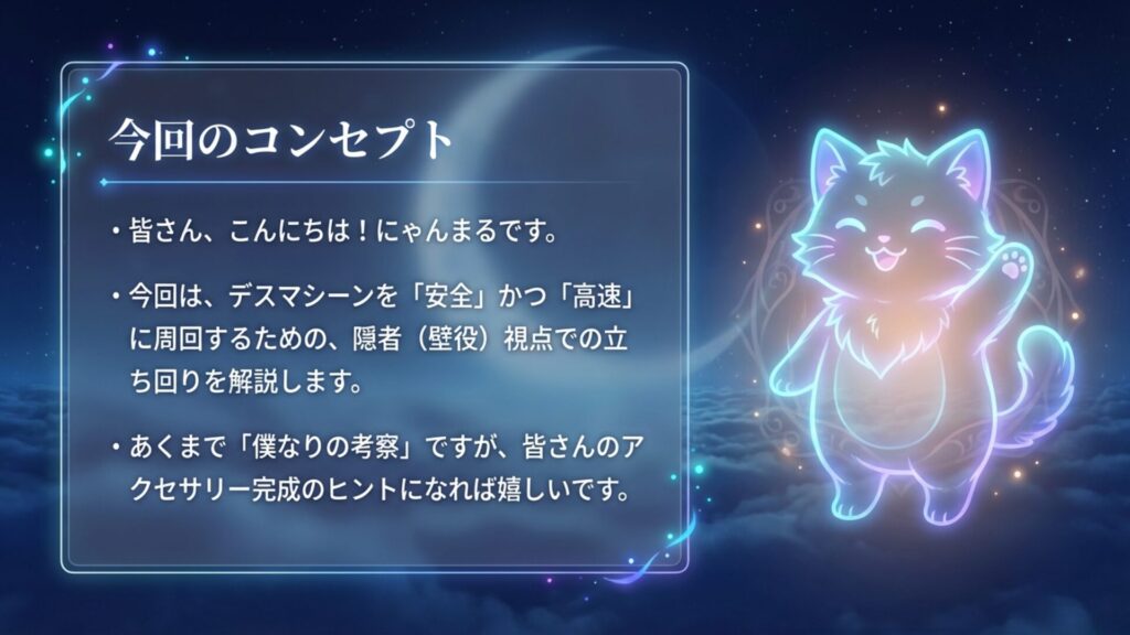 以上、デスマシーンの「壁隠者」攻略ガイドでした。 少しの工夫と連携で、この強敵もグッと遊びやすくなります。
