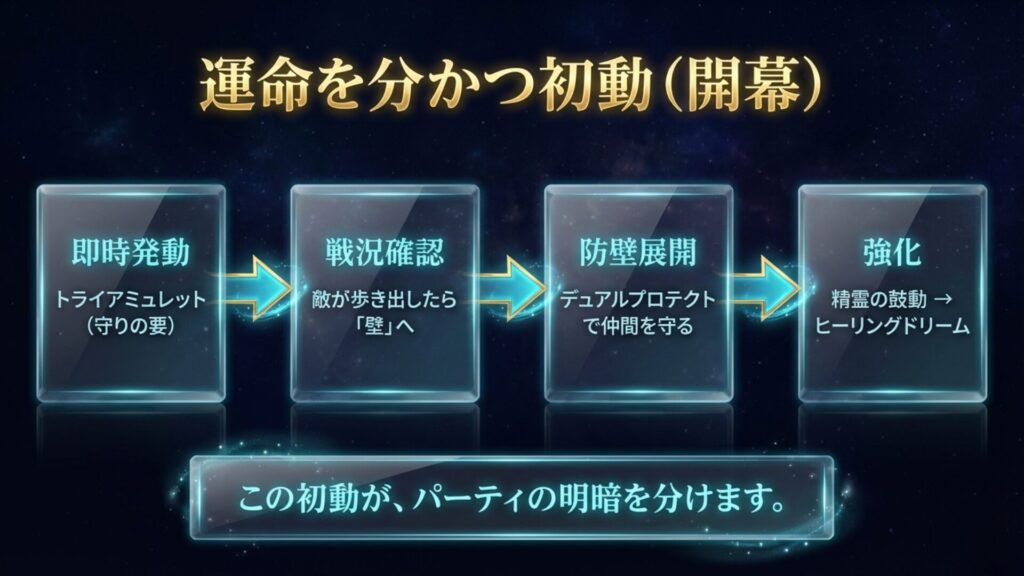 壁隠者にとって、開幕の数秒がパーティの運命を分けます。