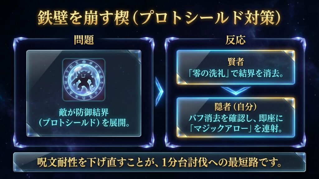 解除直後に呪文耐性低下を入れ直すのが、1分台への近道です。