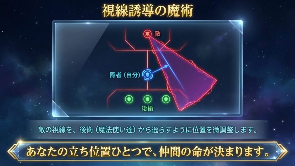 後衛の皆さんが安心して火力を出せる環境を、隠者の動き一つで作ることができます。