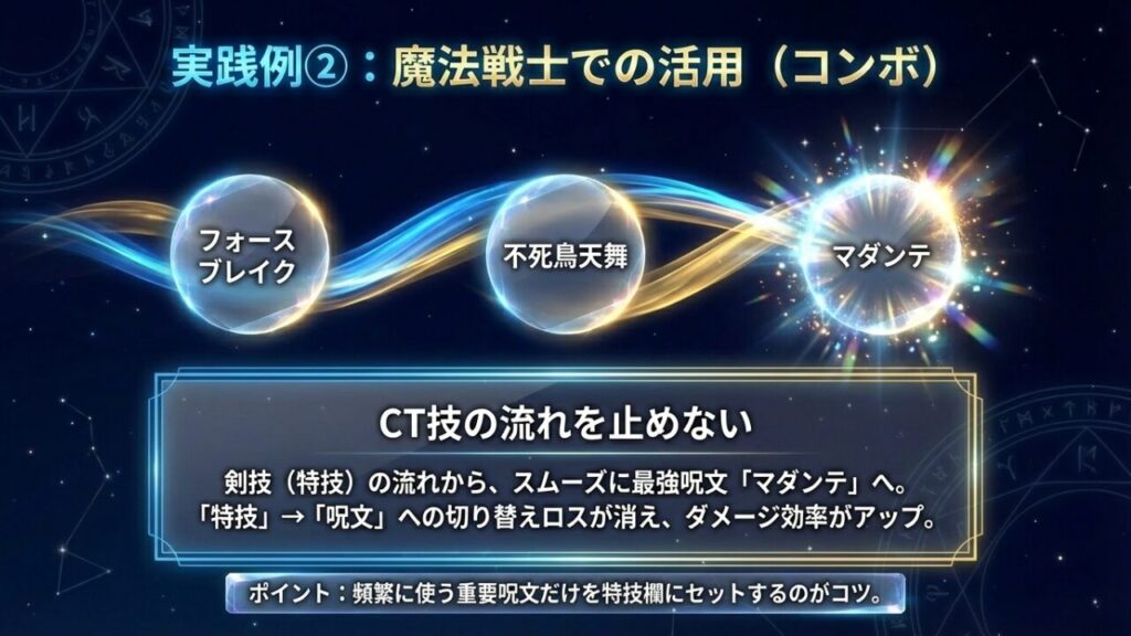 特技欄に呪文を混ぜることで、CT管理とコンボがスムーズになる!