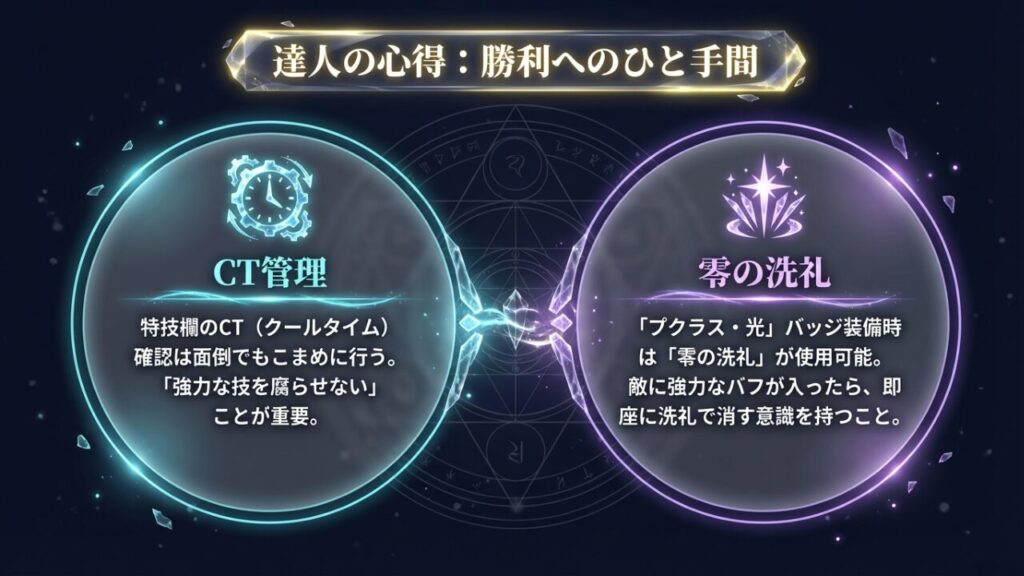 こまめな「CT確認」:特技欄をチェックするのは少し手間ですが、強力な特技を腐らせないことが安定した勝利に繋がります 。