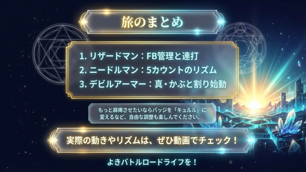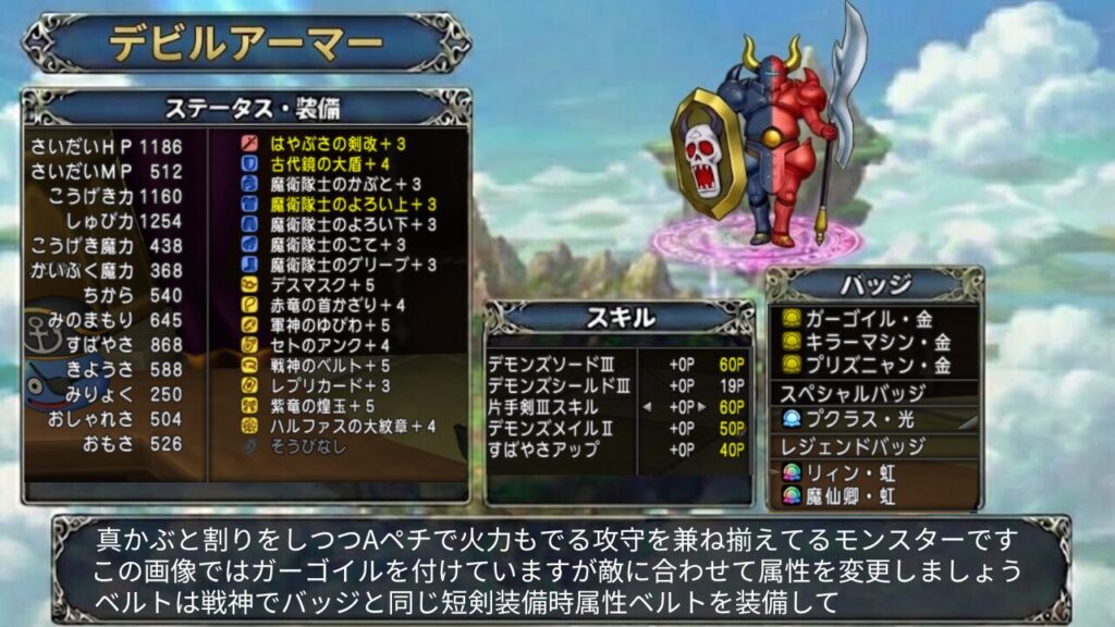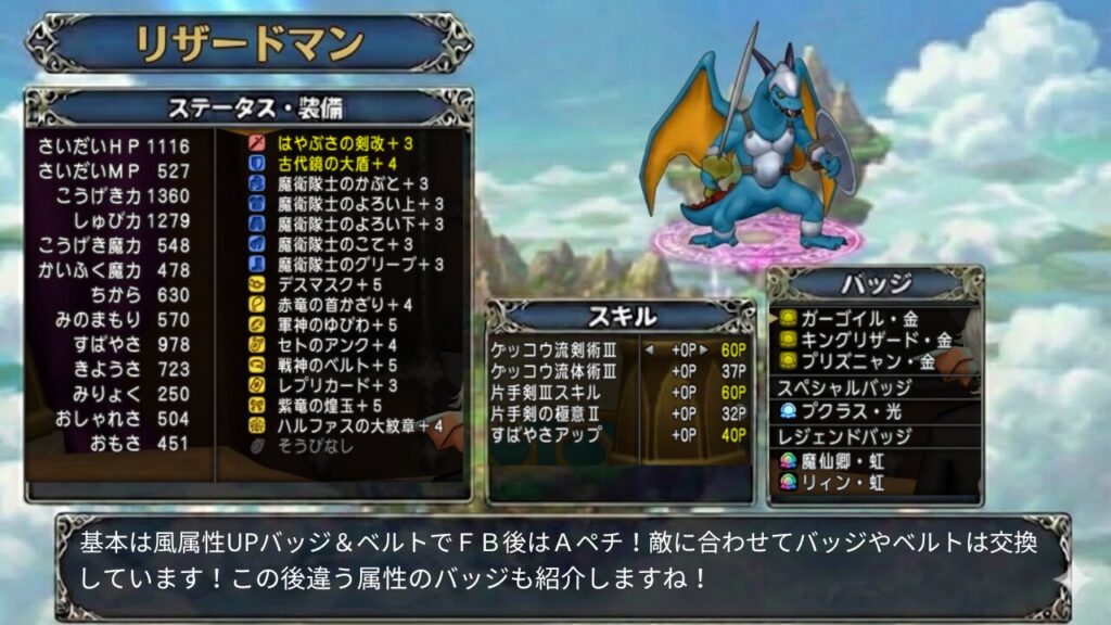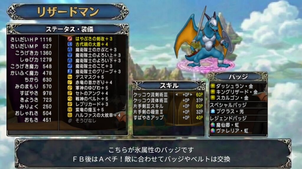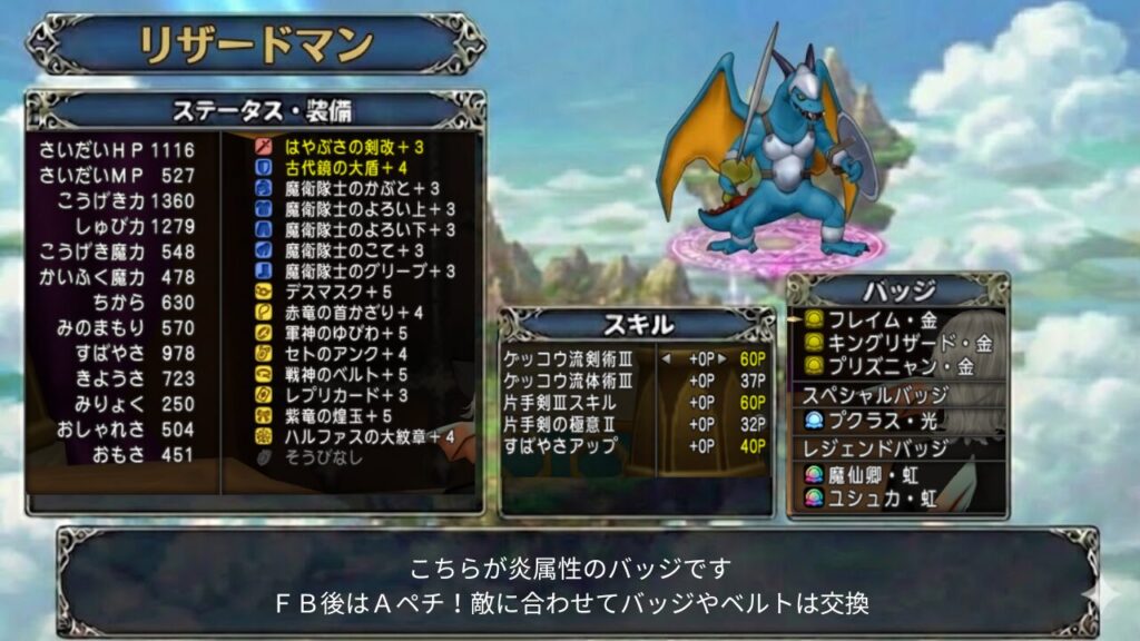 リザードマン・デビルアーマー:手数でダメージを稼ぐため、「はやぶさの剣改」が基本となります 。